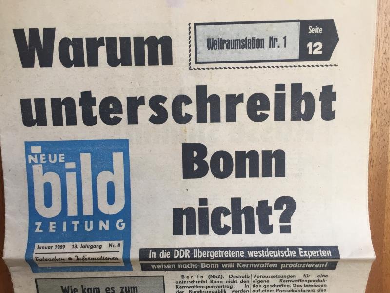 Comprei esse Neue Bild Zeitung (e um Pravda russo) quando estive sozinho em Berlim Oriental por poucas horas na noite de 28 de janeiro de 1969, após cruzar a fronteira de Berlim Ocidental pelo S-Bahn. No dia seguinte fiz uma visita guiada programada "oficial" de Berlim Oriental com todos meus colegas de engenharia do ITA que estavam viajando juntos na Europa.